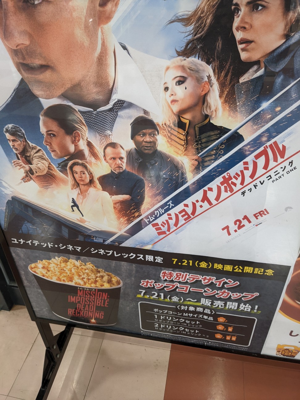 ッドレコニング PART ONE』の公開を記念して、ユナイテッド・シネマ/シネプレックスで特別デザインのポップコーンカップが販売されます。カップのデザインは、映画のキービジュアルをモチーフにしており、トム・クルーズ演じるイーサン・ハントが描かれています。カップは数量限定で、7月21日(金)から販売開始されます